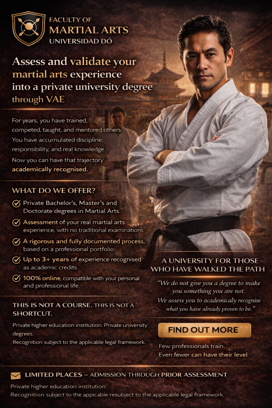 El VAE (Validation of Acquired Experience) te permite acreditar tus años de práctica, grados y experiencia profesional en artes marciales.